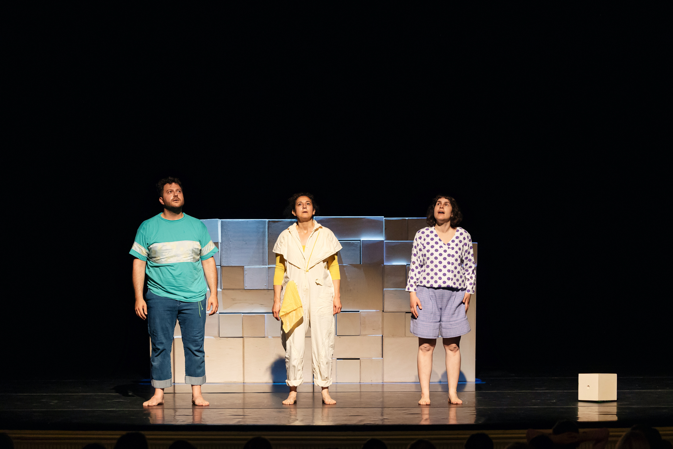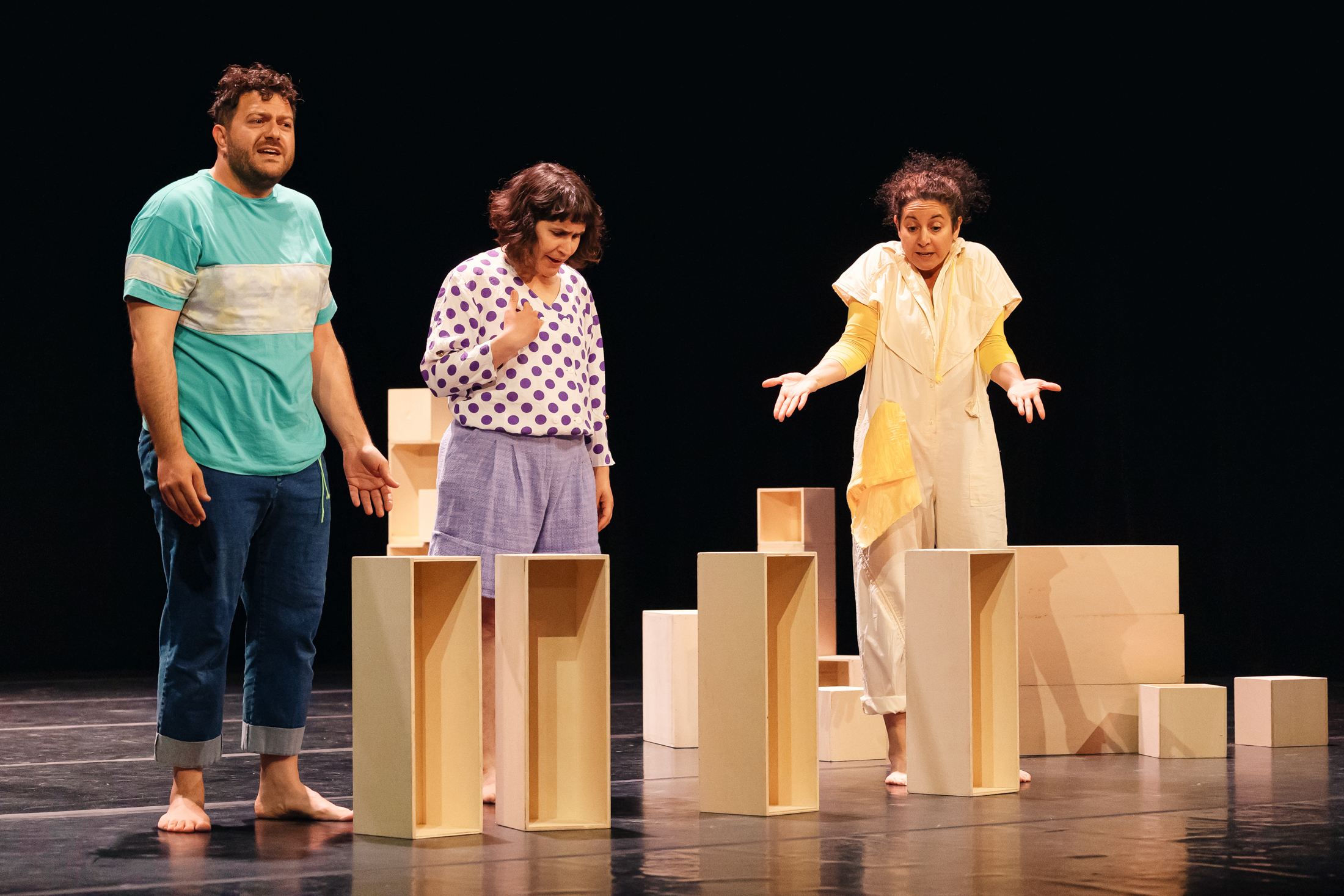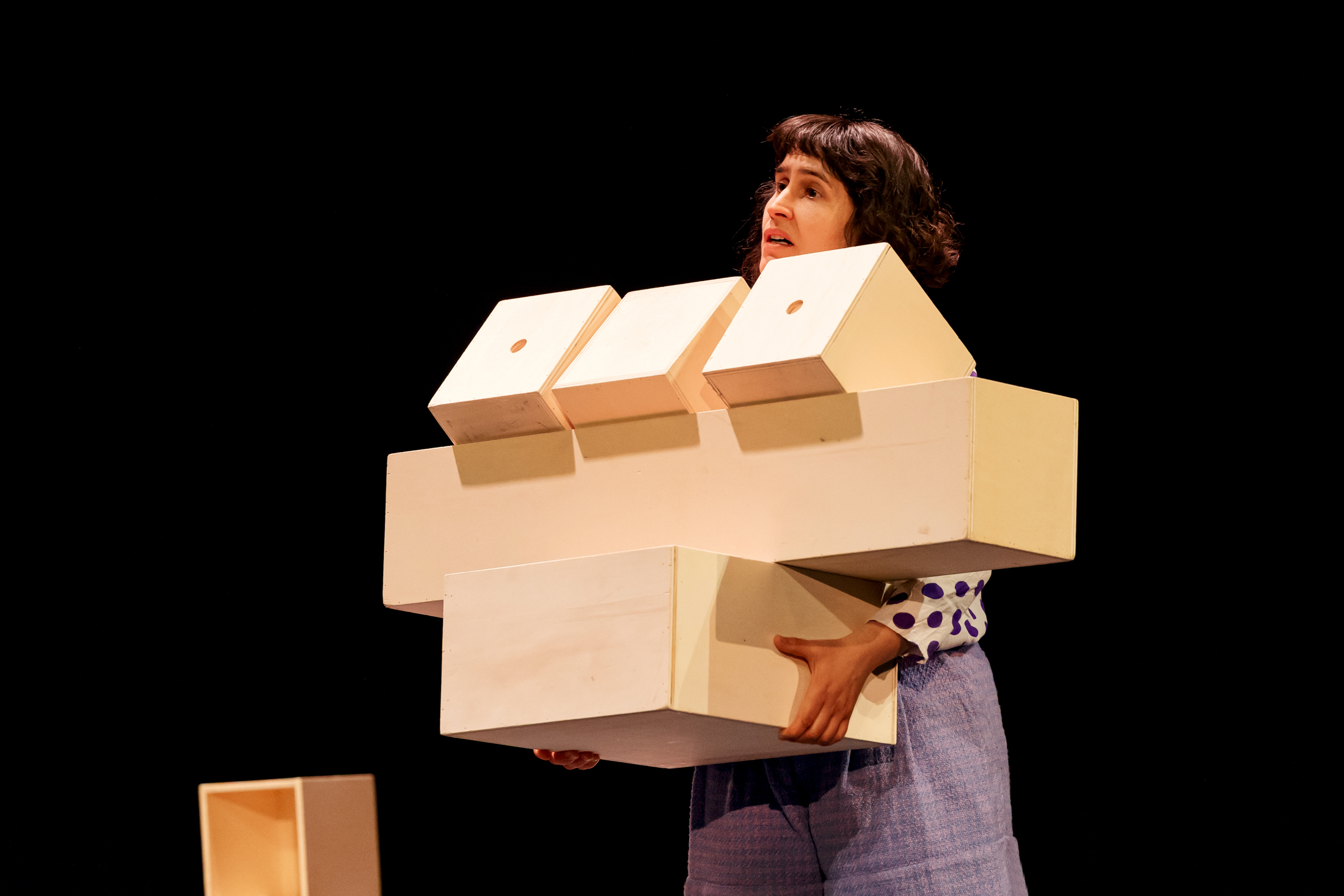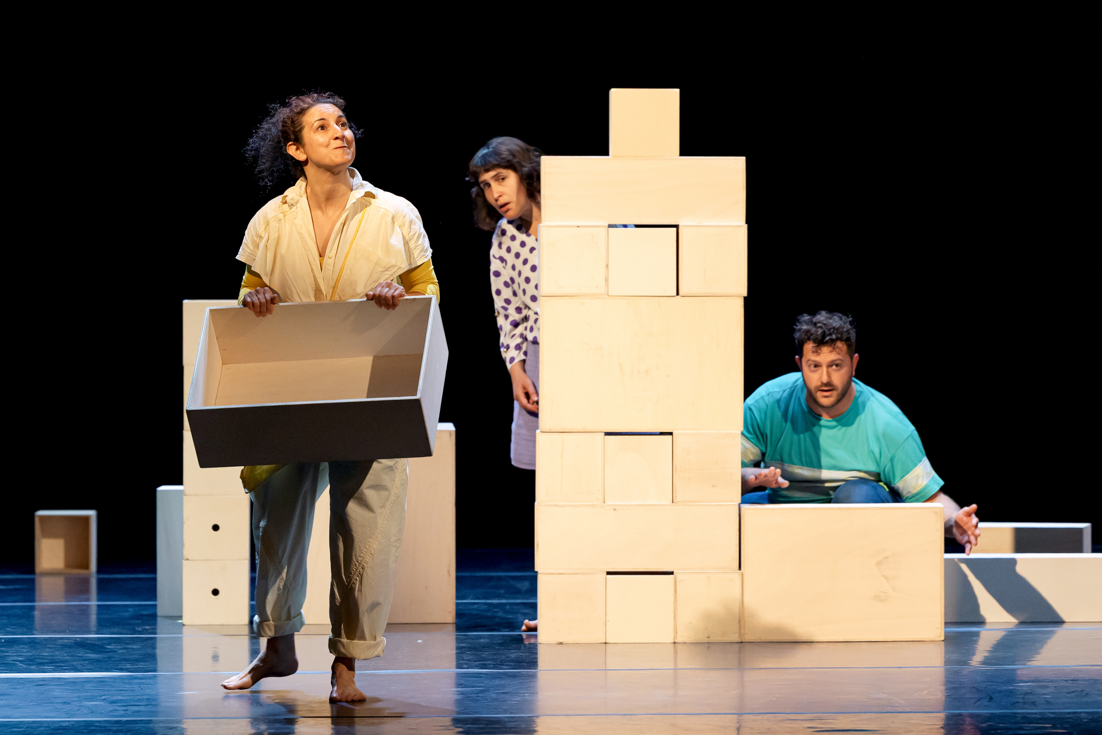Begleitet von Musik eröffnet sich ein Raum voller Schubladen. Kleine, große, lange und kurze – alles scheint in perfekter Ordnung zu sein, alles sortiert, alles am Platz. Die drei Performer*innen ordnen zu und bauen ab, laden und beladen sich, stolpern und brechen zusammen. Was als Spiel beginnt, wird bald ernst und macht immer deutlicher: Ich lasse mich nicht so einfach in eine Schublade stecken, denn ich bin so, so, so und auch so.